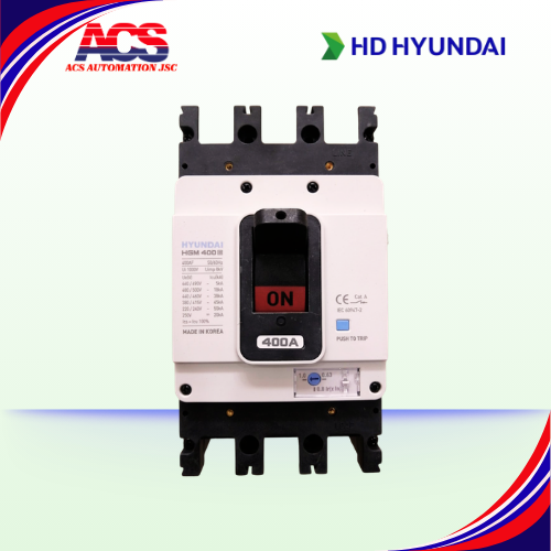 Aptomat Hyundai MCCB 3P HGM400E-F 45kA 400A là cầu dao khối 3 pha cao cấp, dòng định mức 400A, dòng cắt ngắn mạch 45kA, dùng bảo vệ quá tải và ngắn mạch. Sản phẩm nhập khẩu Hàn Quốc (nhà sản xuất Hyundai Electric)