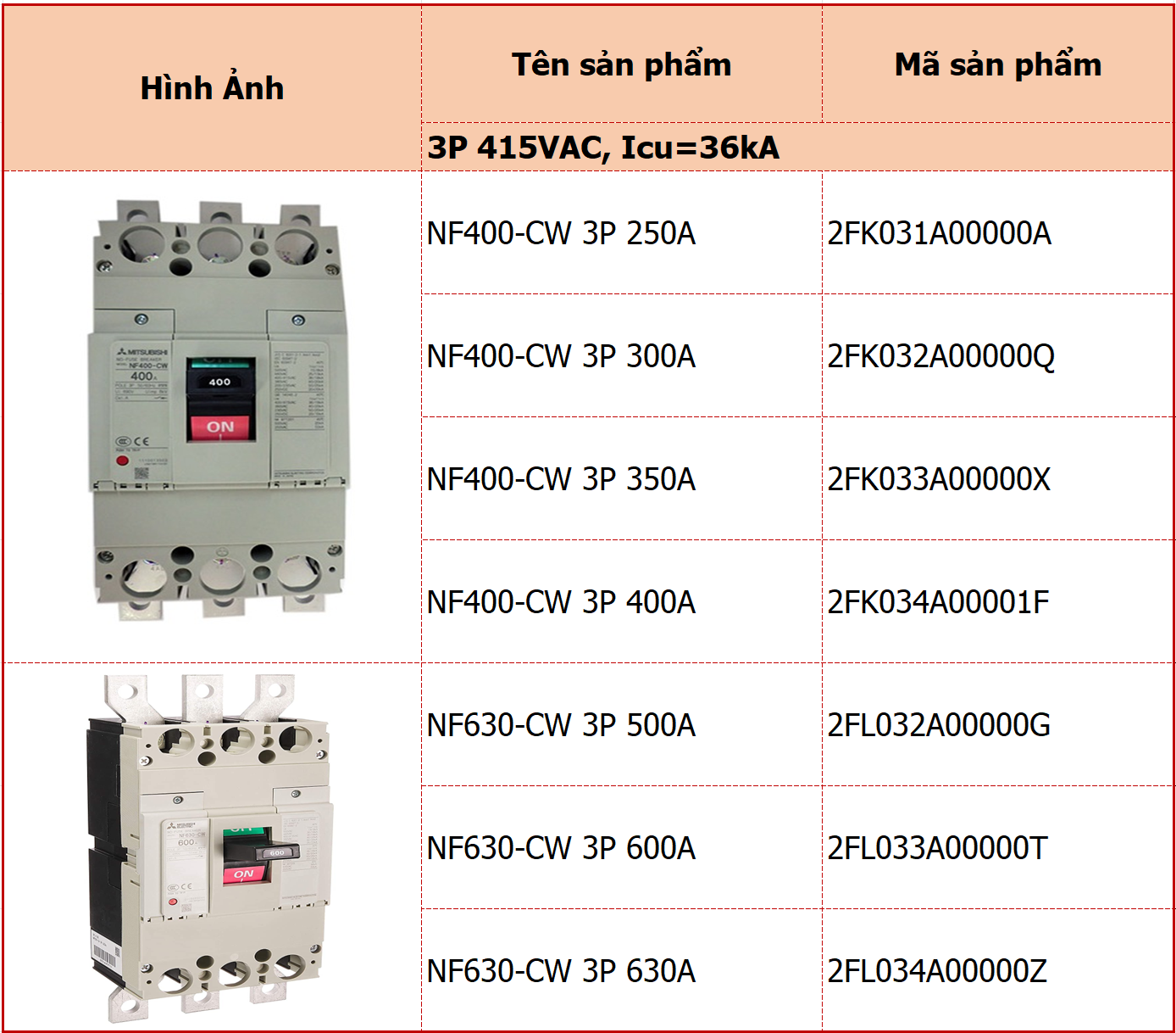 Aptomat MCCB Mitsubishi NF600-CW 3P 600A là một loại cầu dao tự động dạng khối được sử dụng phổ biến trong các hệ thống điện dân dụng và công nghiệp để bảo vệ quá tải và ngắn mạch