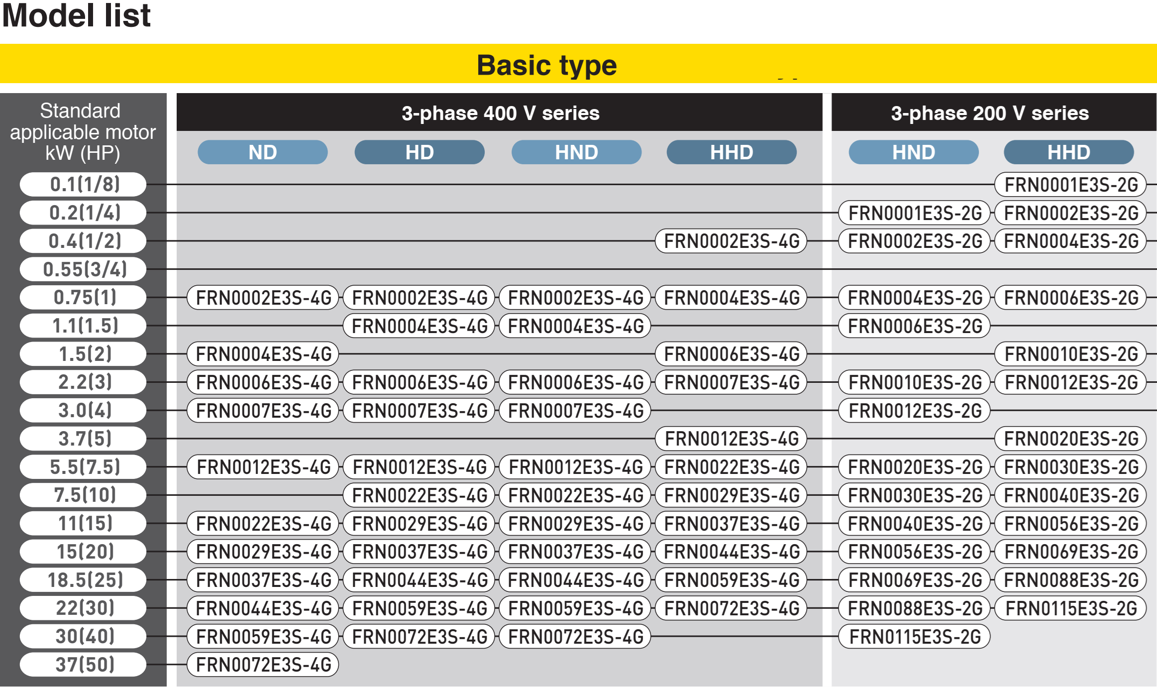 - Input 3P 380VAC- Output 3P 380VAC. Công suất 0,75kW – 37kW