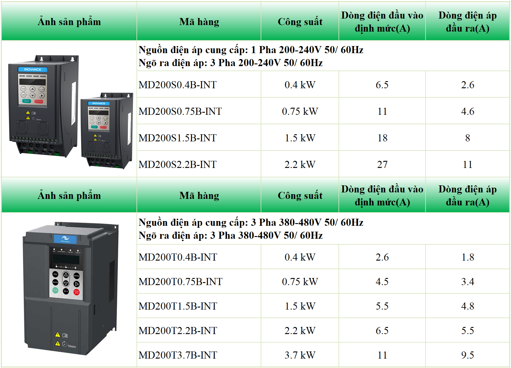 Biến tần Inovance MD200T0.75B-INT là dòng biến tần xoay chiều (AC Drive) công suất 0,75kW, thuộc phân khúc mini, kích thước nhỏ gọn nhưng hiệu suất mạnh mẽ, phù hợp cho các ứng dụng tải nhẹ và trung bình.