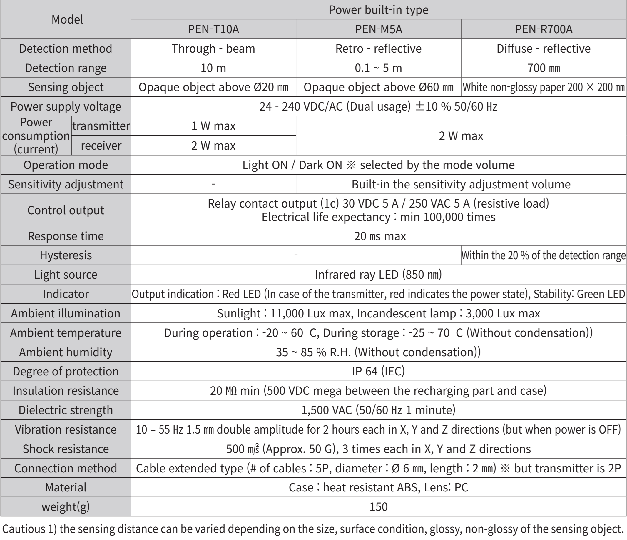 ♦ Thông số Cảm biến quang Hanyoung PEN-M5A