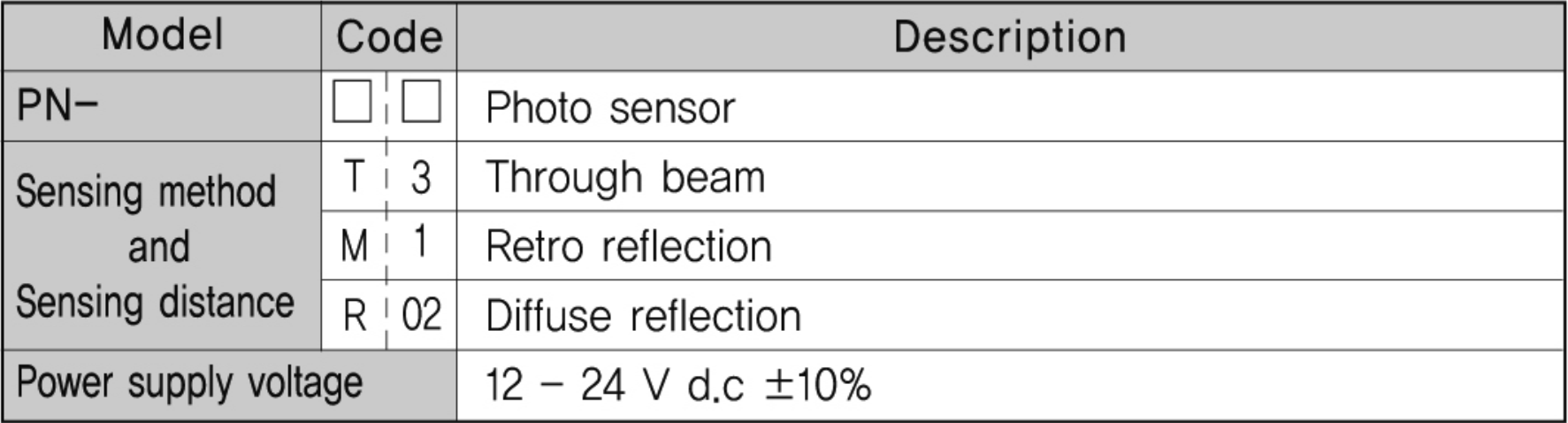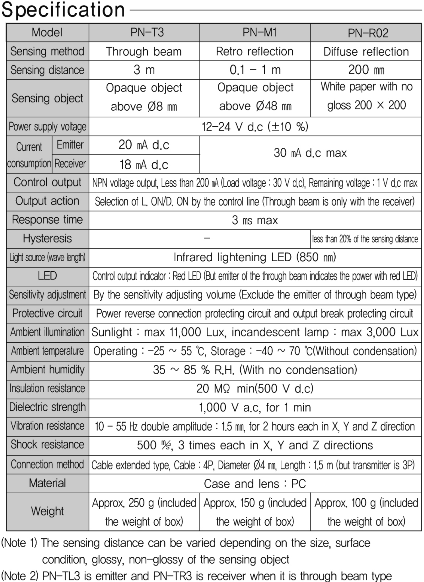 ♦ Thông số Cảm biến quang Hanyoung PN series