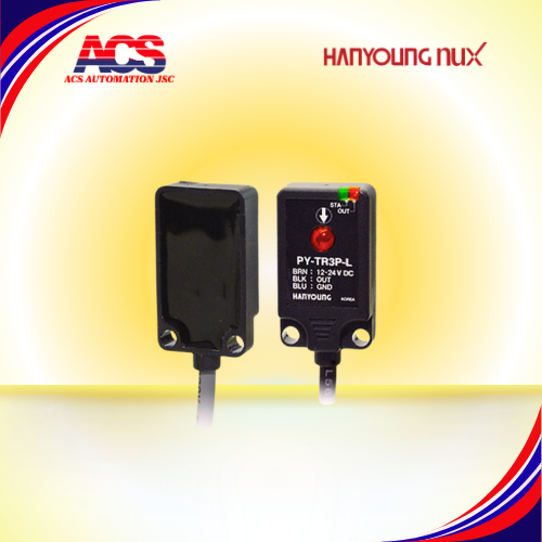 Cảm biến quang Hanyoung PY-T3N là dòng cảm biến quang điện loại mỏng (Slim type) với thiết kế hình hộp nhỏ gọn, thường được sử dụng trong các hệ thống tự động hóa công nghiệp để phát hiện vật cản.