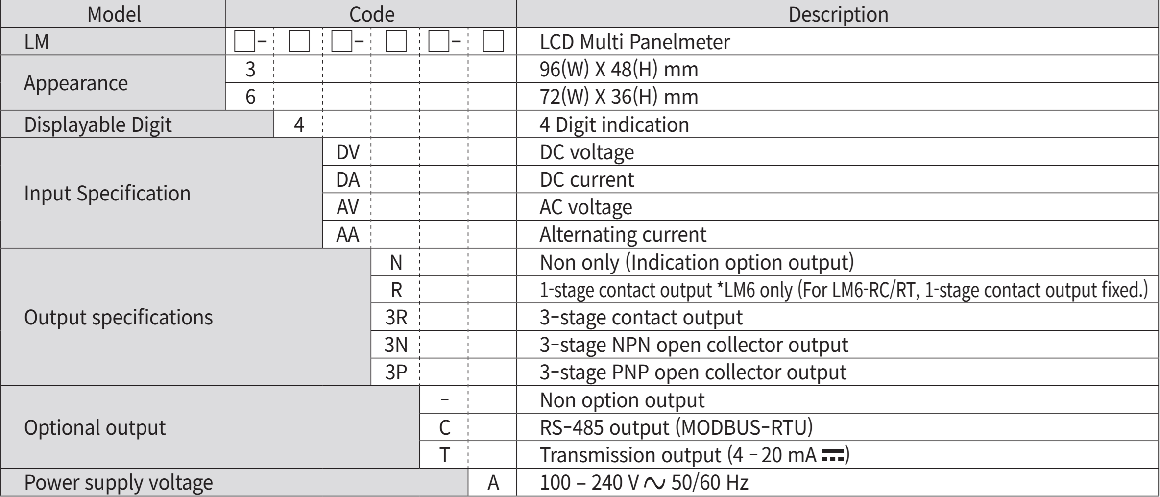 ♦ Bảng chọn Đồng hồ đa năng Hanyoung LM series