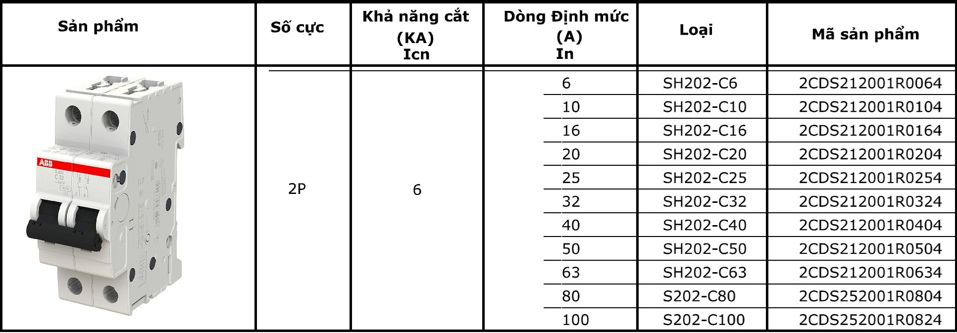 • Số cực: 2P (2 pha)