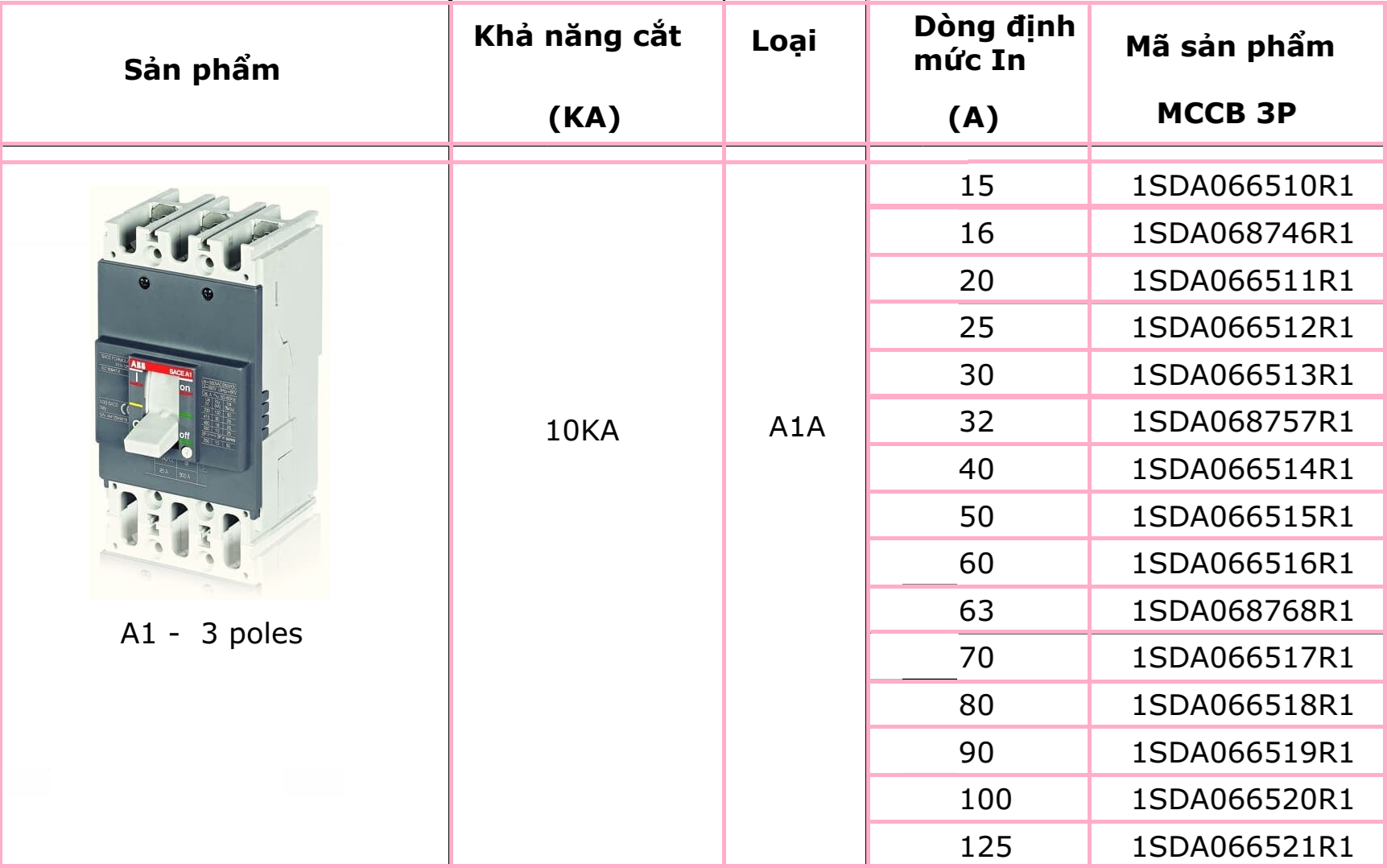 Aptomat ABB MCCB Formula A1A 3P 10kA 70A 1SDA066517R1