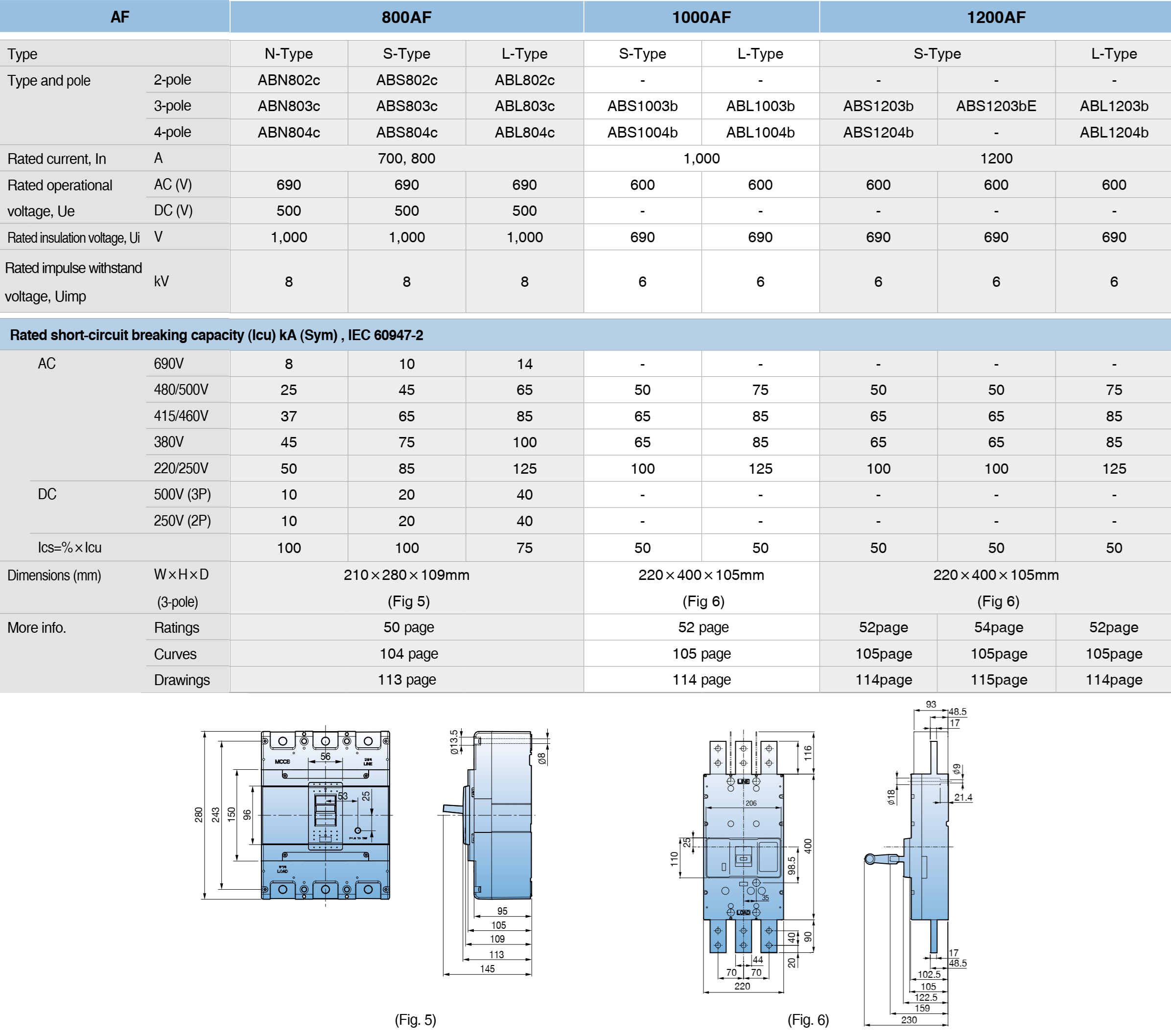 Aptomat MCCB LS ABN803c 3P 700A ~ 800A 45kA là một loại Aptomat khối (MCCB) 3 cực của hãng LS Industrial Systems (Hàn Quốc), có dòng định mức điều chỉnh được từ 700A đến 800A, dòng cắt ngắn mạch 45kA (tại 380V), dùng để đóng cắt và bảo vệ hệ thống điện 3 pha hạ thế khỏi quá tải và ngắn mạch, phổ biến trong công nghiệp và thương mại