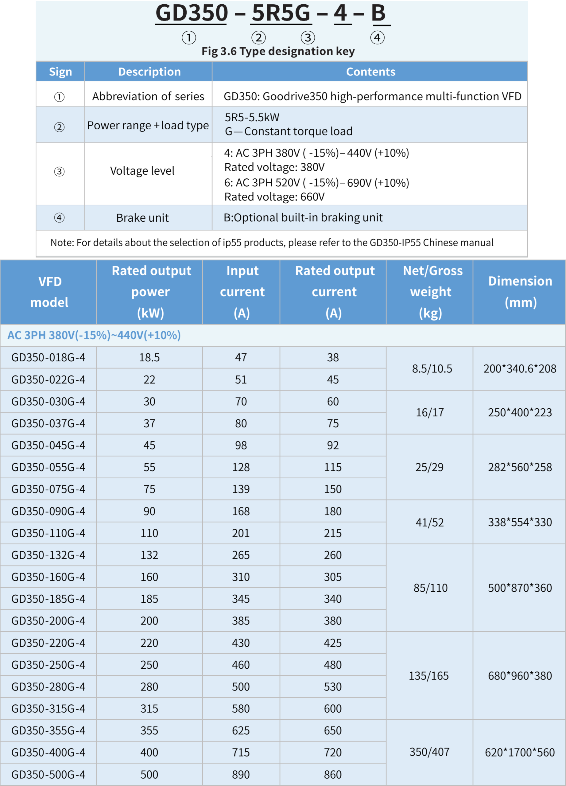- Dòng sản phẩm: Biến tần đa chức năng cao cấp INVT GD350 Series