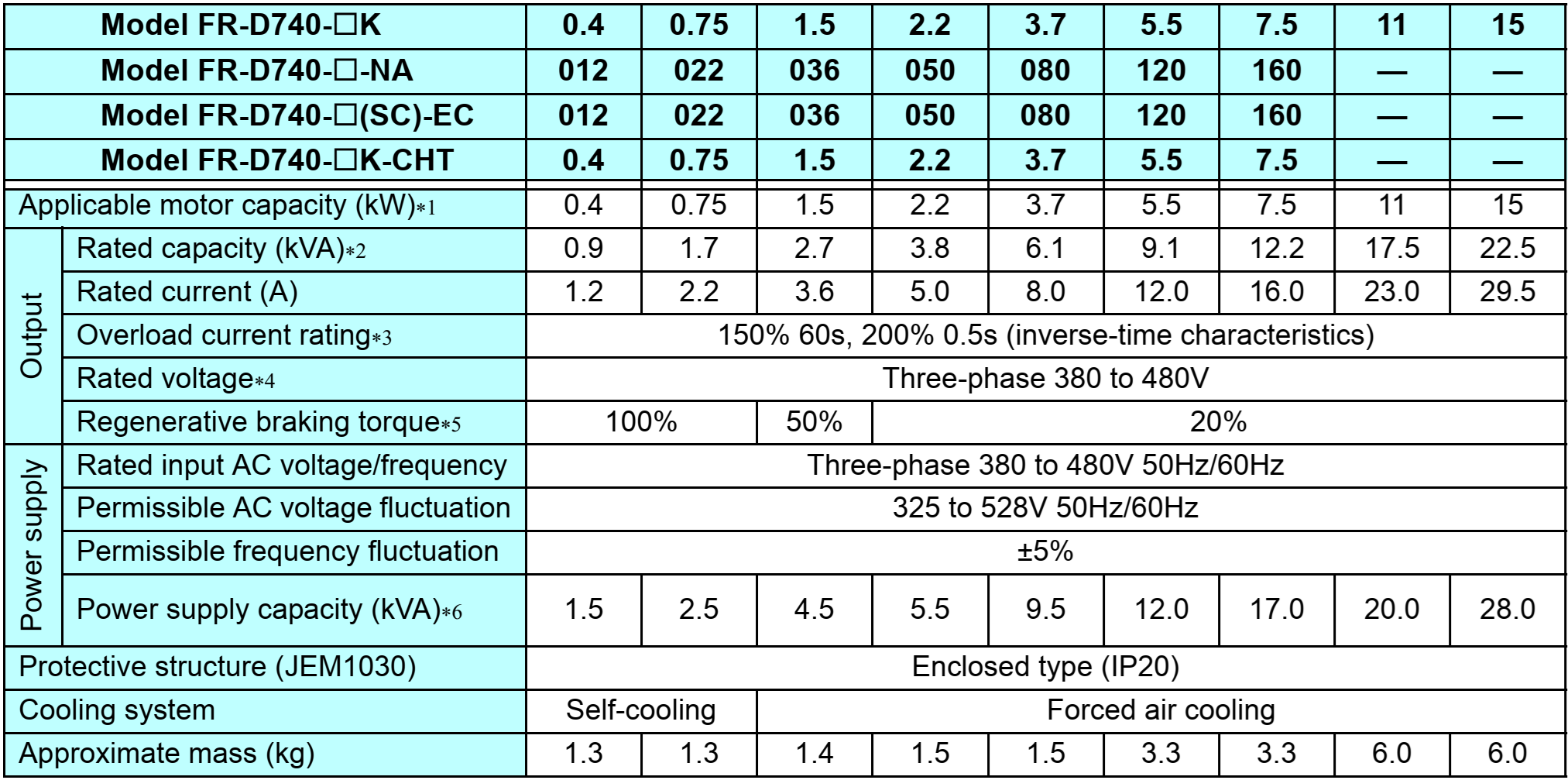- Điện áp: 3 pha 380V đến 480V AC (50/60Hz).
