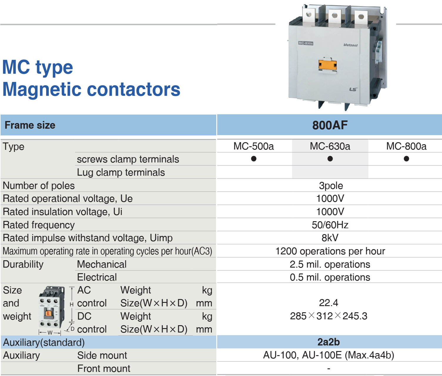 - Khả năng tương thích: Tương thích với rơ le nhiệt LS MT-800 để bảo vệ quá tải