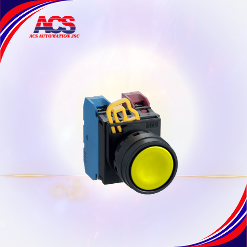 Sản phẩm bạn đang tìm kiếm là Nút nhấn nhả không đèn IDEC YW1B-M1E01Y, có màu vàng và kích thước lắp đặt 22mm. Đây là một thành phần điều khiển công nghiệp với một tiếp điểm thường đóng (1NC)