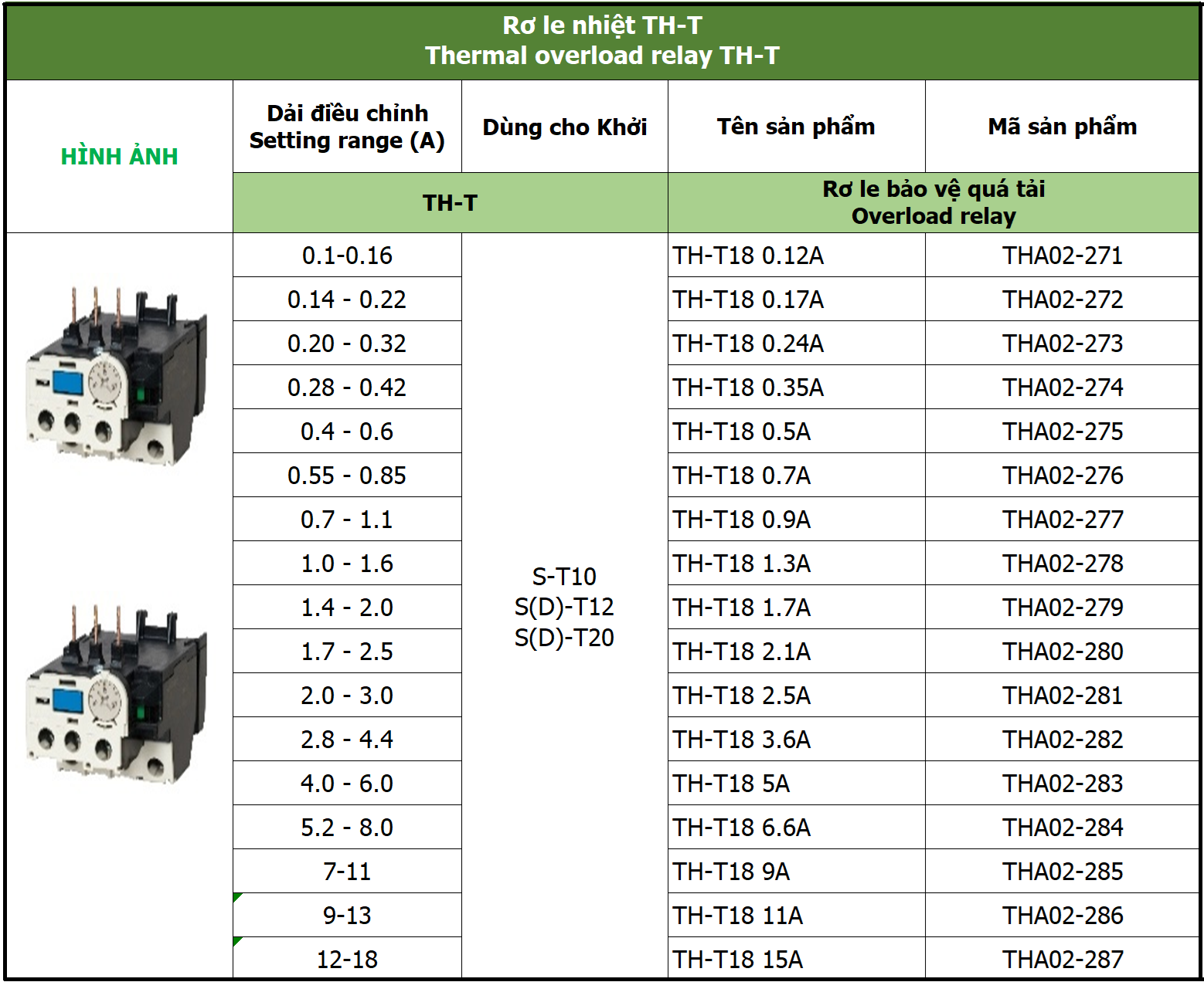 • Tương thích với Khởi động từ: S-T10, S-T12, và S-T20